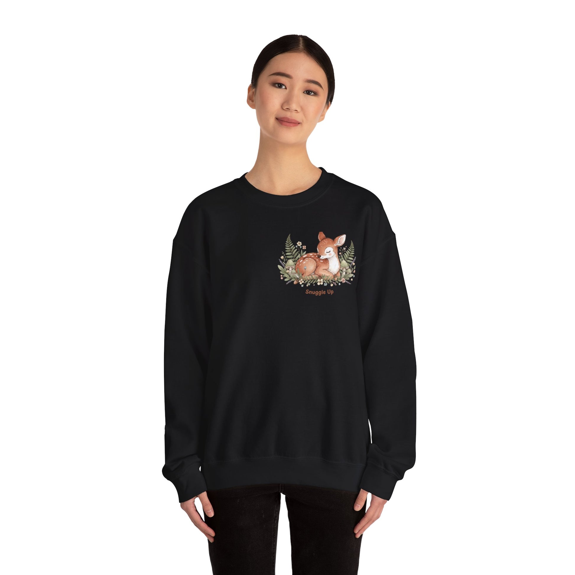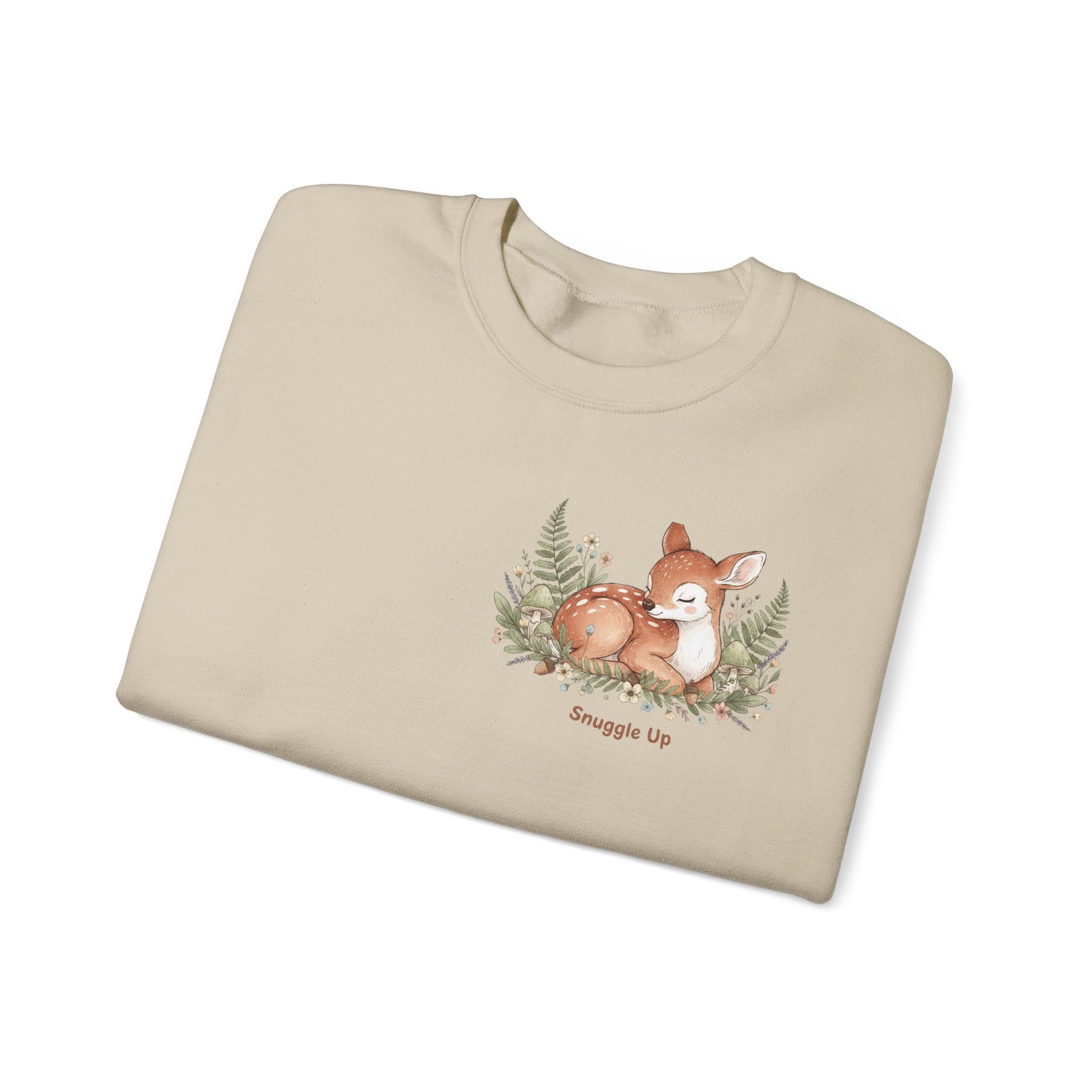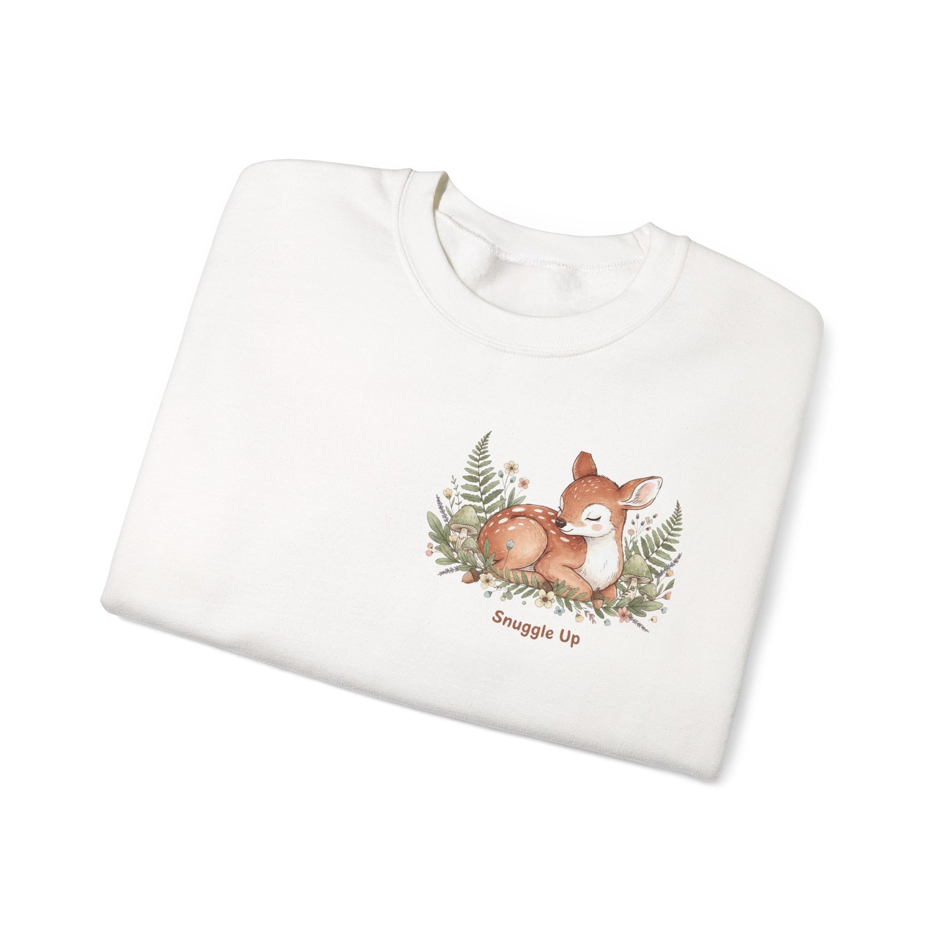 Cozy Winter Forest Fawn Crewneck Sweatshirt | cute animal illustration, cozy critter art