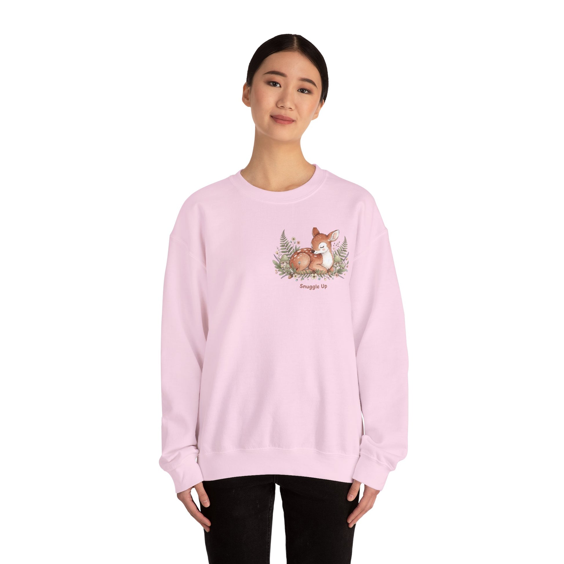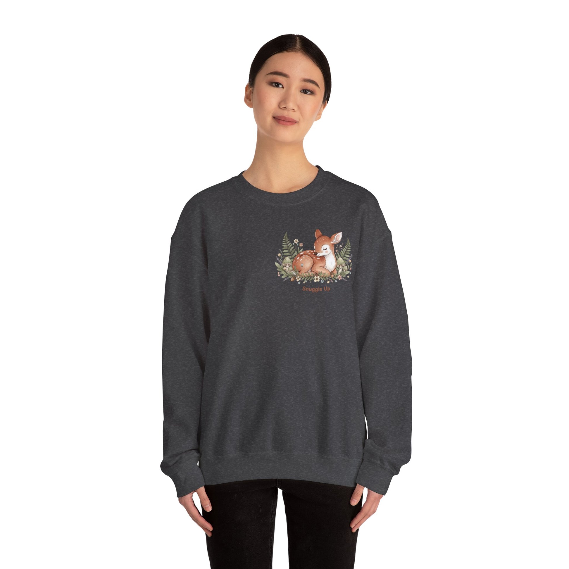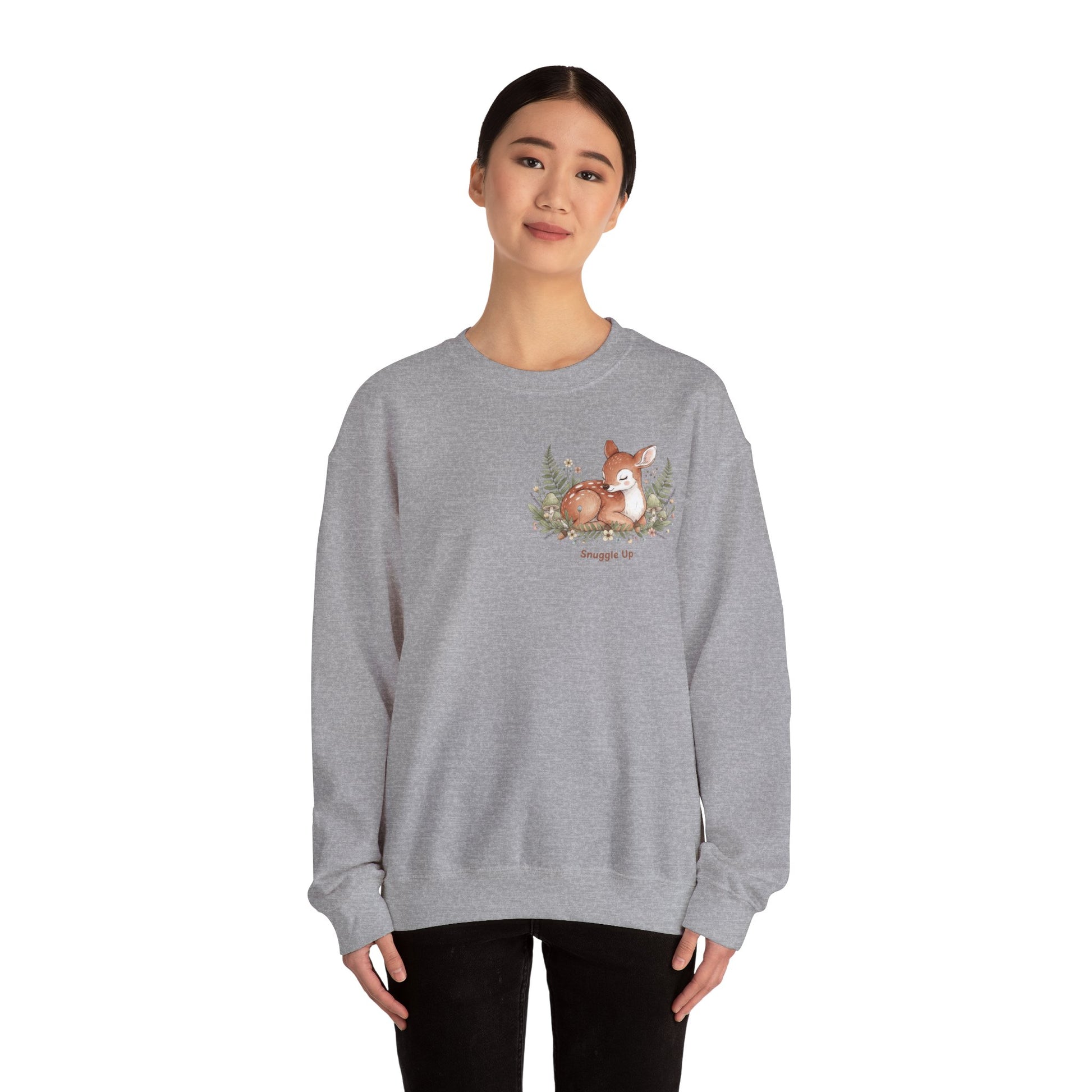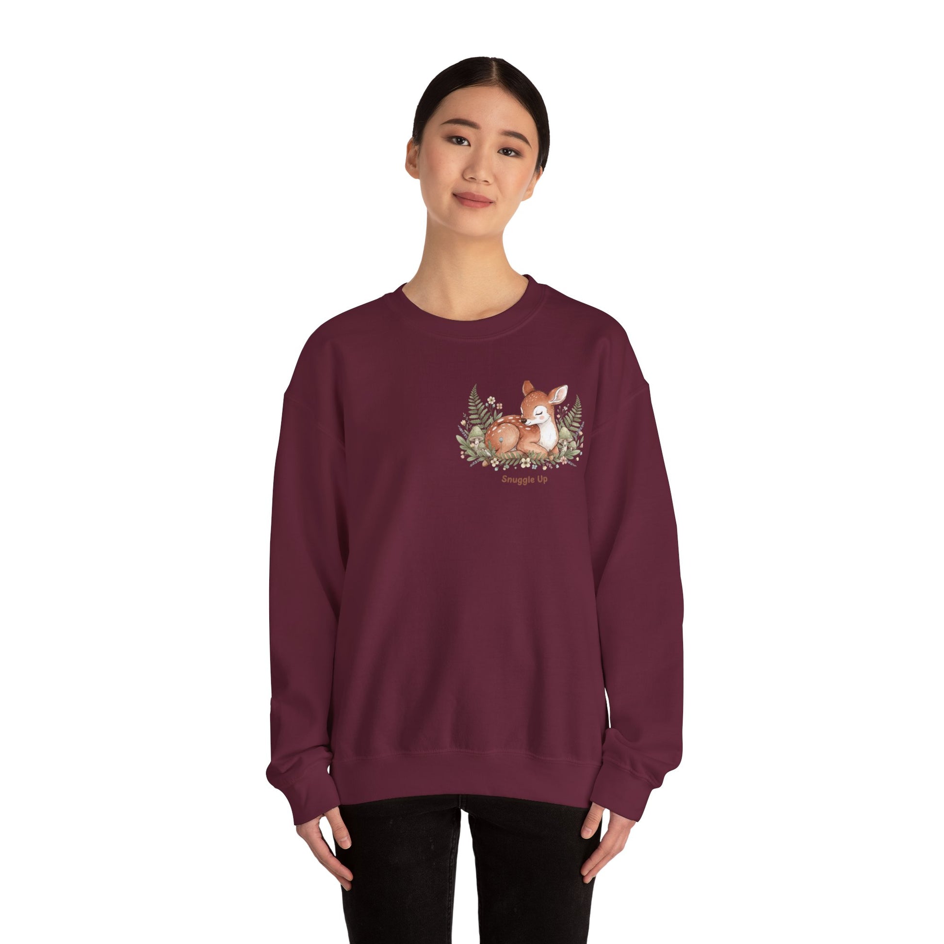 Cozy Winter Forest Fawn Crewneck Sweatshirt | cute animal illustration, cozy critter art