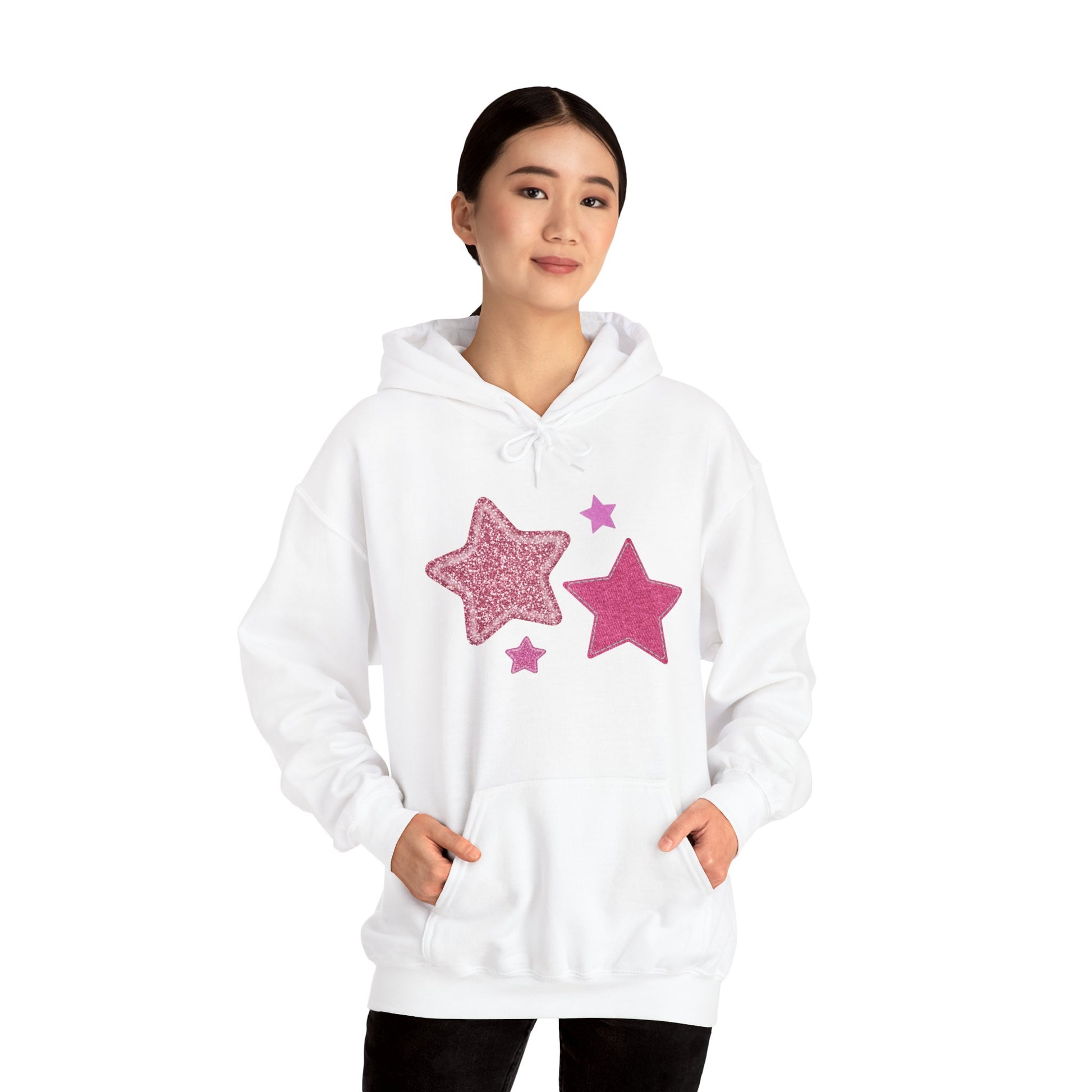 Pink Glitter Stars Hoodie — Cute Sparkle Graphic Pullover